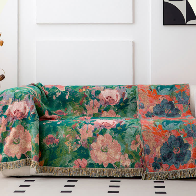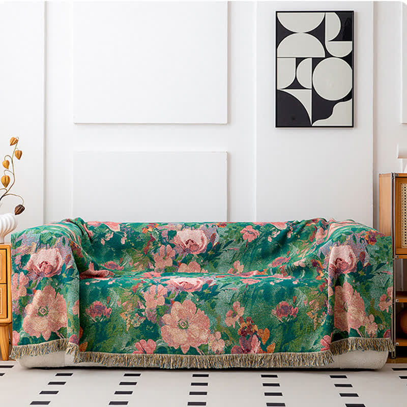 Botanical Leaf Sofa Waffle Throw Blanket -